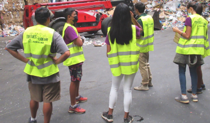 Visite d’un centre de tri des déchets et rencontre avec « Face Polynésie », une entreprise qui effectue de l’upcycling.