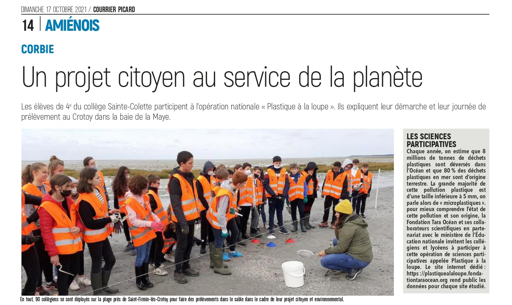 Une classe de 4ème du Collège Sainte Colette de Corbie (Académie d’Amiens).