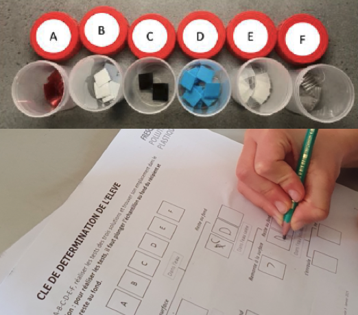 Issue de la Fresque de la pollution plastique, cette expérimentation permet aux élèves d’identifier différents plastiques grâce à l’utilisation d’une clé de détermination.