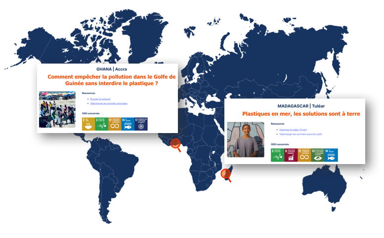 Fort du succès de la fresque de la pollution plastique, cet outil existe désormais aussi en anglais et en espagnol, dans sa version pour le collège. Cette traduction est issue d’un travail de collaboration avec le collège Antoine Risso de l’académie de Nice.