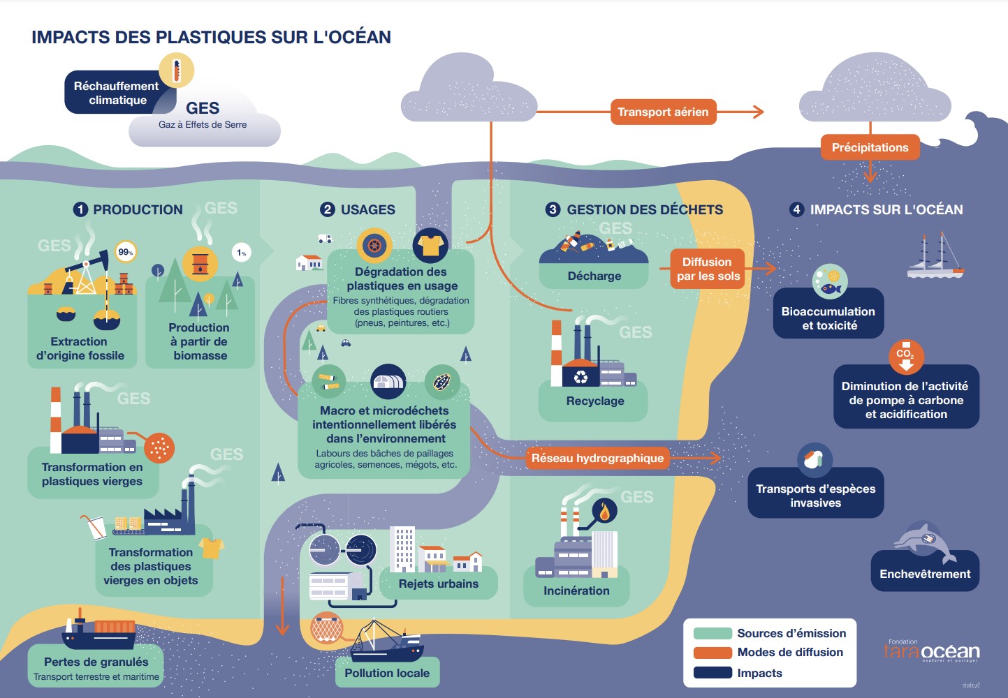 La Fondation Tara Océan a conçu une série de 8 infographies “Plastique en mer, les solutions sont à terre” pour comprendre les enjeux du plastique depuis les processus de fabrication jusqu’aux enjeux environnementaux et les recherches scientifiques associées, ainsi que les solutions possibles pour y remédier.